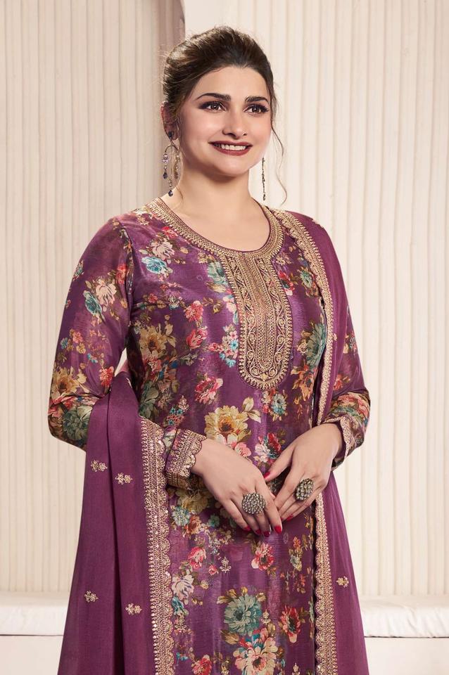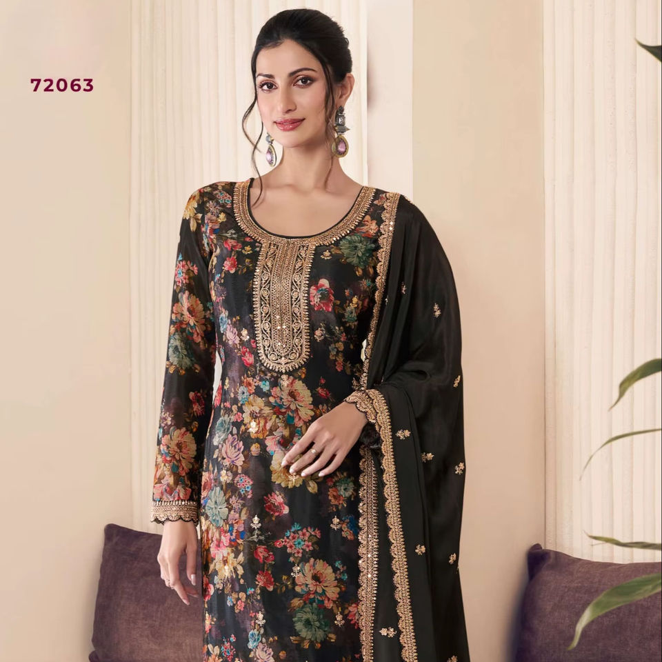 ชุดสาหรี่คามีซแบบกึ่งสำเร็จรูปปักลายดิจิตอล Chinon สำหรับงานปาร์ตี้ งานดิวาลี และงานแต่งงาน