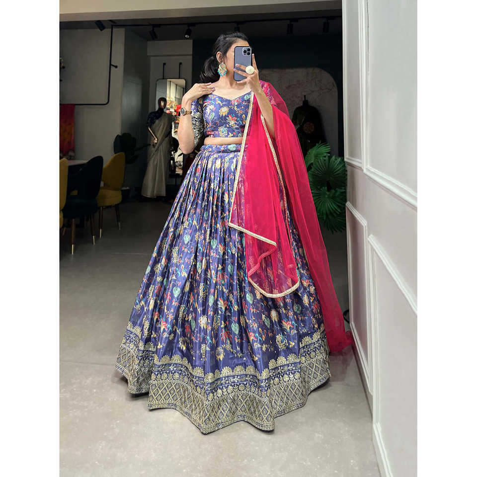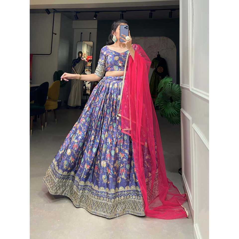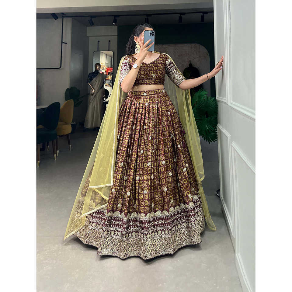 Chinon Brown Digital Print with Embroidery Sequins Work Lehenga Choli LNB Wear
