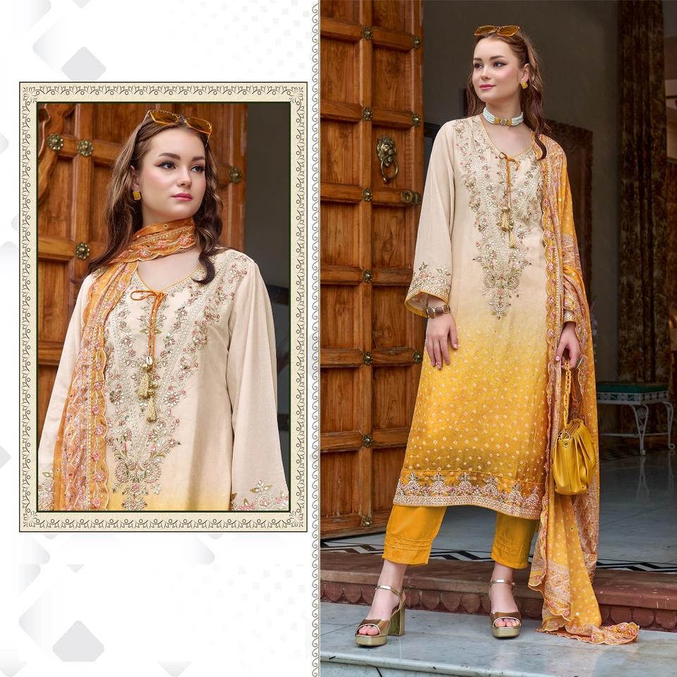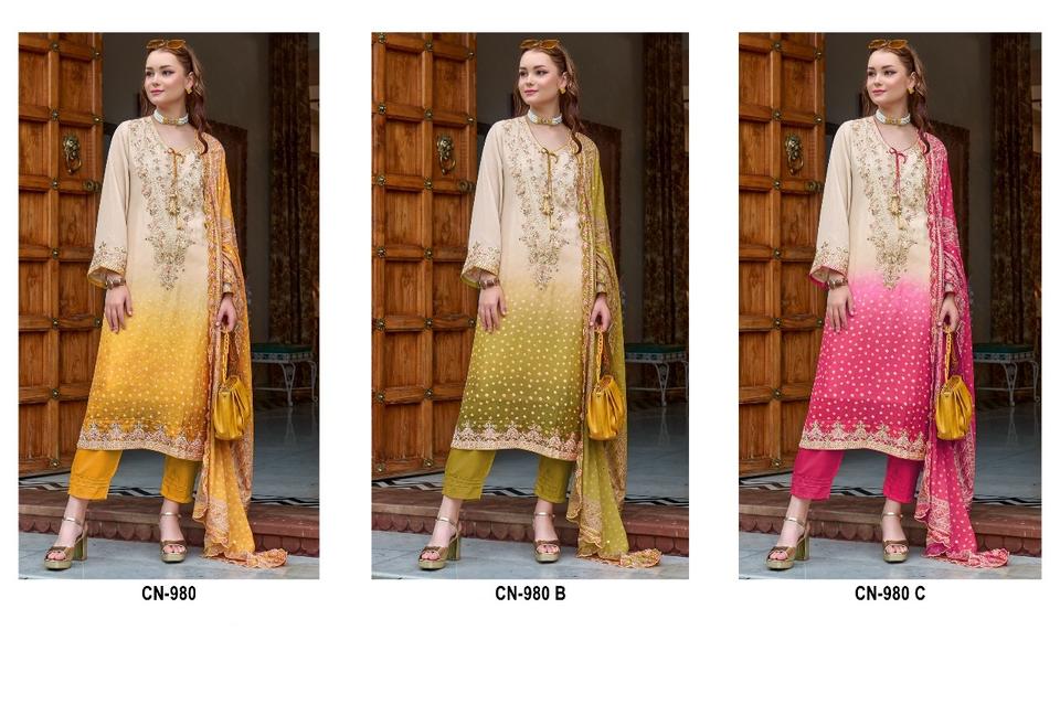 Chinon เย็บแบบกึ่งเย็บจากผ้าโปร่งบางพิมพ์ลายสำหรับงานปาร์ตี้สไตล์อินเดีย