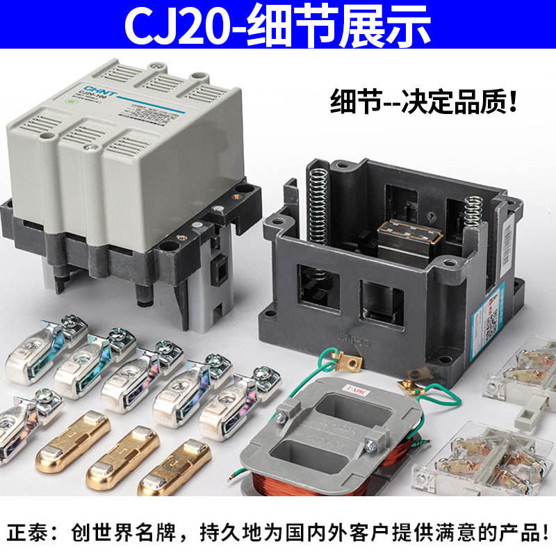 คอนแทคไฟฟ้า CHINT AC 220V Single-Phase 380V ชุด CJ20-100A สามเฟสพร้อม40A 63A 160A 25A 250A ขดลวด400A