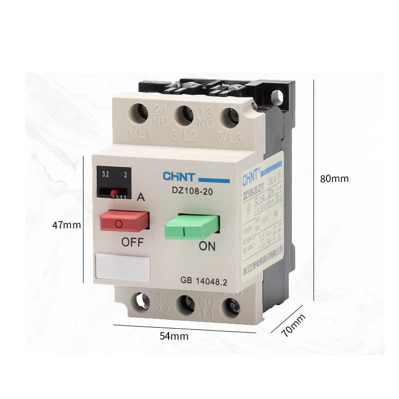 เบรกเกอร์ป้องกันมอเตอร์ Chint DZ108-20/211 แบบเทอร์มอล ขนาดเล็ก 20A/16A/12.5A/10A/8A/6.3A วัสดุทองแดง สำหรับป้องกัน