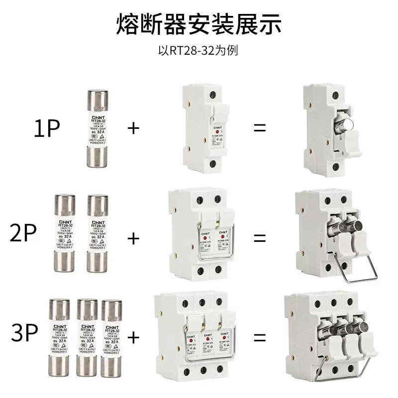 ฟิวส์เซรามิก Chint กระแสสูง 32A ฟิวส์ลิงค์ 100A พร้อมฐานโลหะตัวยึดฟิวส์ทองแดงแรงดันต่ำ ความสามารถในการตัดวงจรสูง