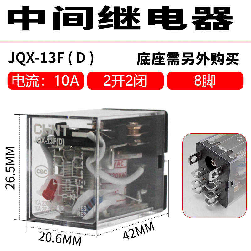 Chint JQX-13F 2Z Plug-in Electromagnetic Intermediate Relay 24V/220V/12V Wide 8-Pin 8-Claw Protective Relay for Small Devices