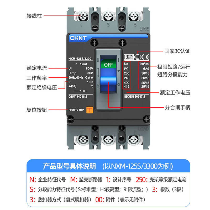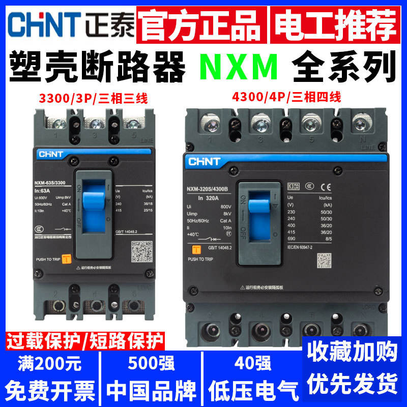 Chint เคสเบรกเกอร์ nxm Air SWITCH 3P 4P เบรกเกอร์สี่สายสามเฟสพร้อม63A 100A 125A ตัวเลือก250A