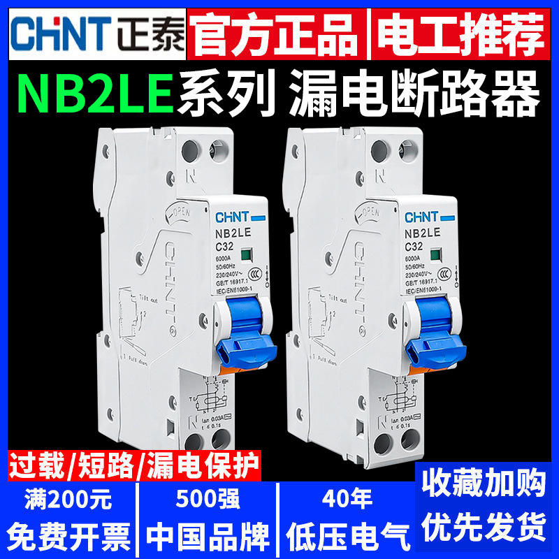 Chint NB2LE เบรกเกอร์ขนาดเล็กที่มีการป้องกันการรั่วซึม1P + 3P 10A 20A 16A 25A 32A เสา40A