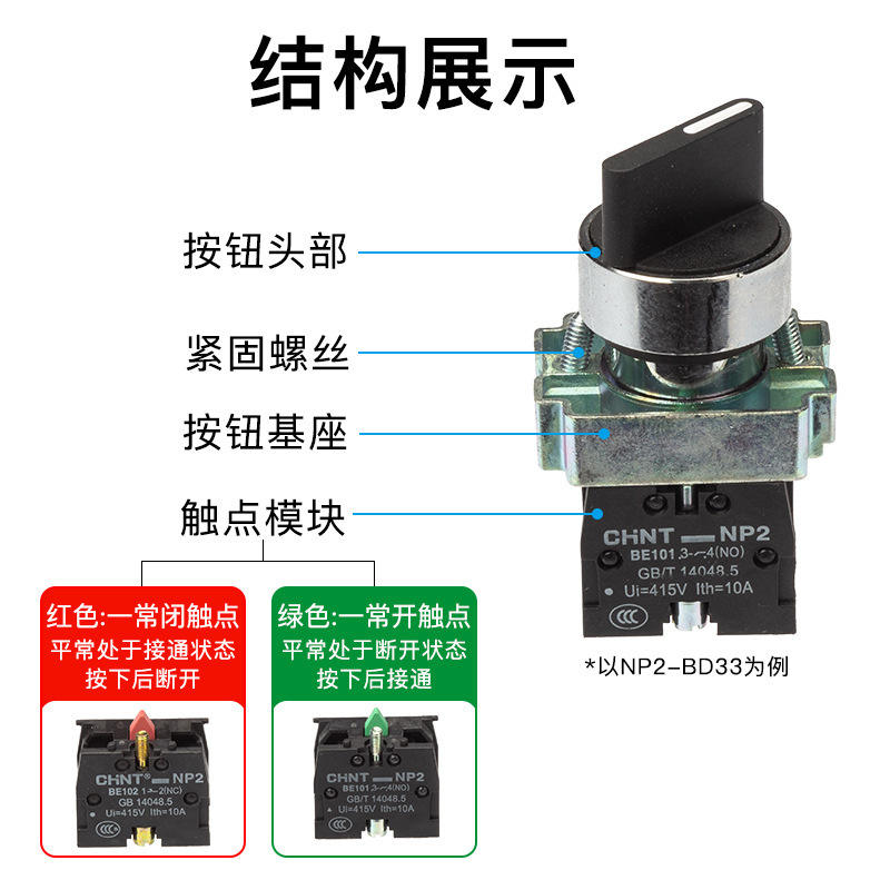 สวิตช์หมุนแบบล็อคอัตโนมัติ Chint NP2-BD21 หัวโลหะ แบบสองตำแหน่ง 25 ตำแหน่ง สามตำแหน่ง 33 ตำแหน่ง คุณภาพพรีเมียม