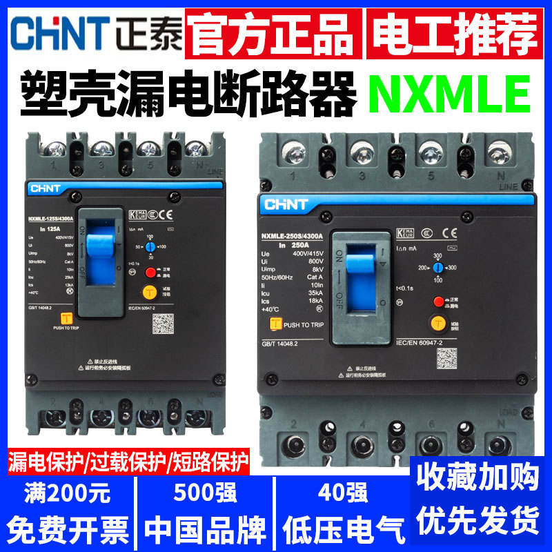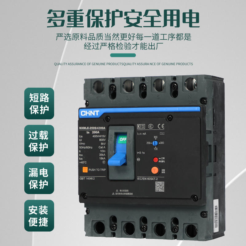 เบรกเกอร์วงจรไฟฟ้าแบบแม่เหล็กและความร้อนชนิดเคสขึ้นรูปทองแดงสามเฟส Chint NXMLE สำหรับงานอุตสาหกรรม พร้อมคุณสมบัติป้องกันไฟรั่ว