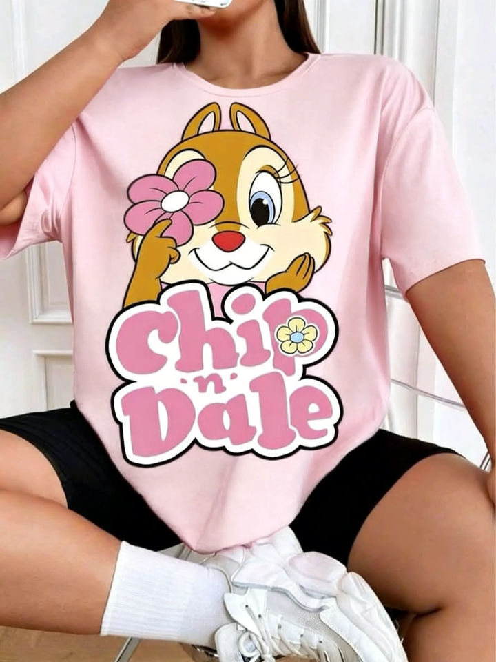 ชิป เดลเสื้อยืดผู้หญิงผ้าฝ้ายแขนสั้นน่ารักการ์ตูนกราฟิกพิมพ์ฤดูร้อนเสื้อลำลอง 2026 แฟชั่น Y2k