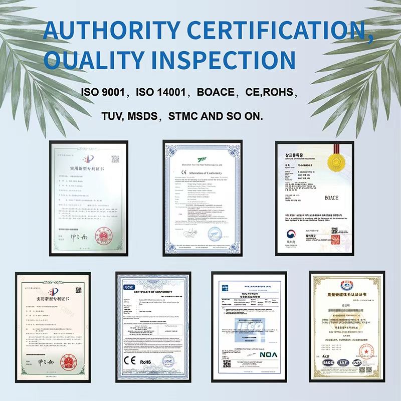 การรับรอง:CE, RoSH, ISO9001, ISO14001, ISO45001, MSDS, STMC, QC080000 ฯลฯ