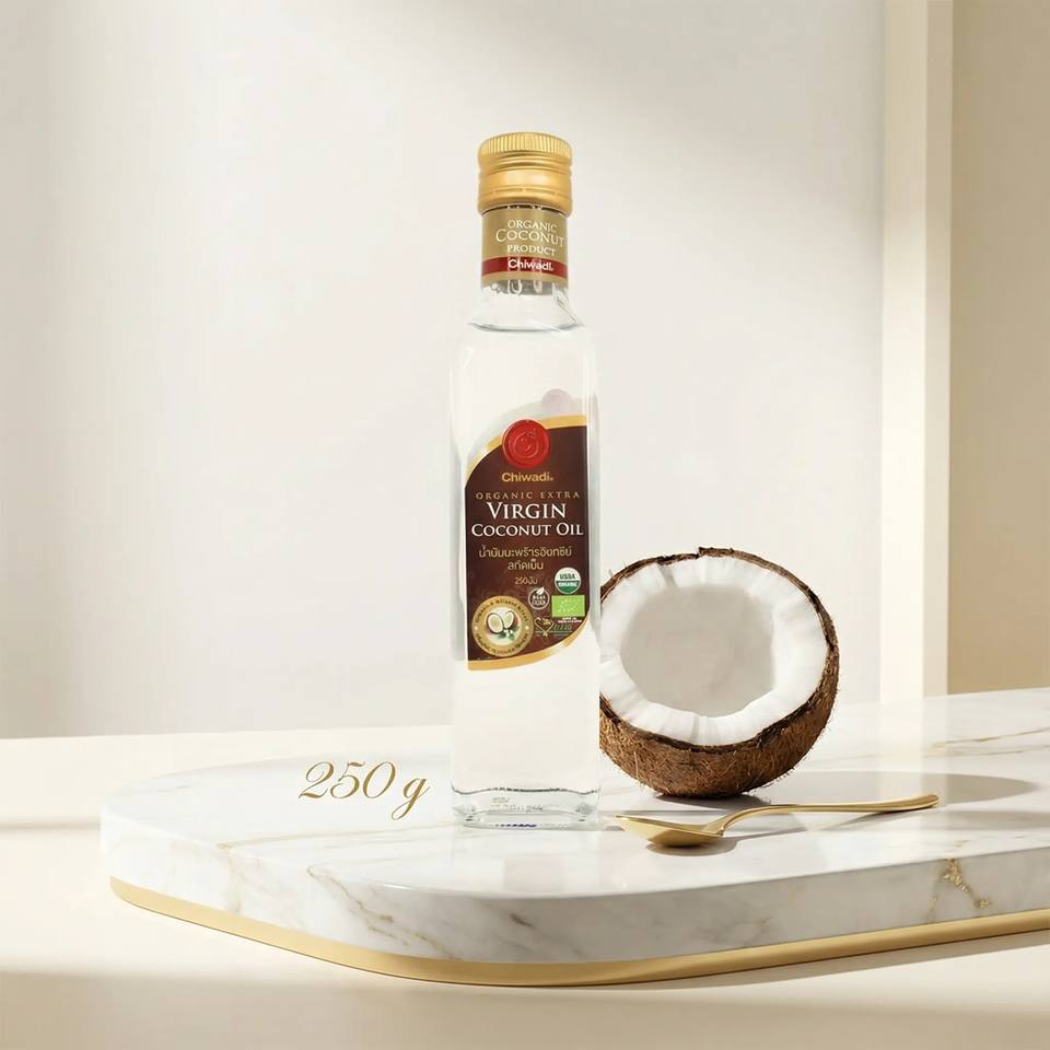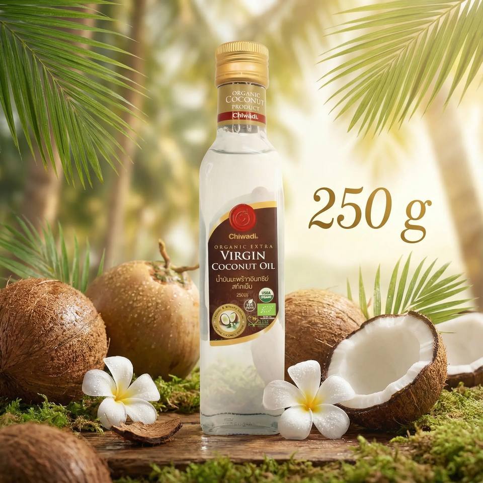 น้ำมันมะพร้าวสกัดเย็นออร์แกนิค ชิวาดี 250 มล. มอยเจอร์ไรเซอร์บำรุงผิวกายน้ำมันมะพร้าว ไม่มีสารเติมแต่ง ปราศจากไขมันทรานส์