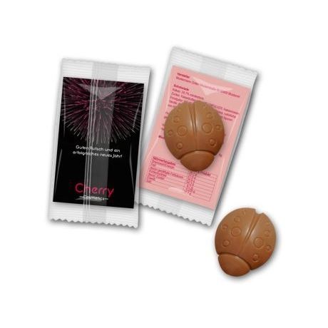 ด้วงช็อคโกแลตบนการ์ดขนมช็อคโกแลตที่สง่างามและละเอียดอ่อน