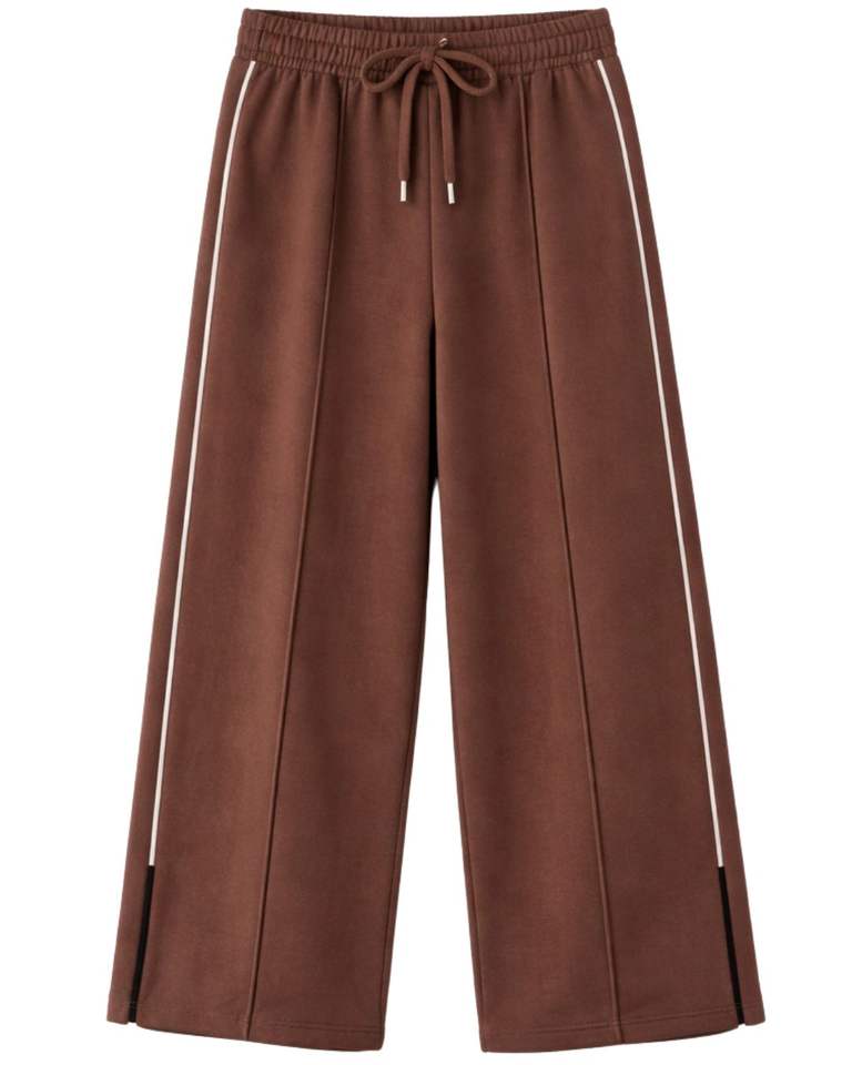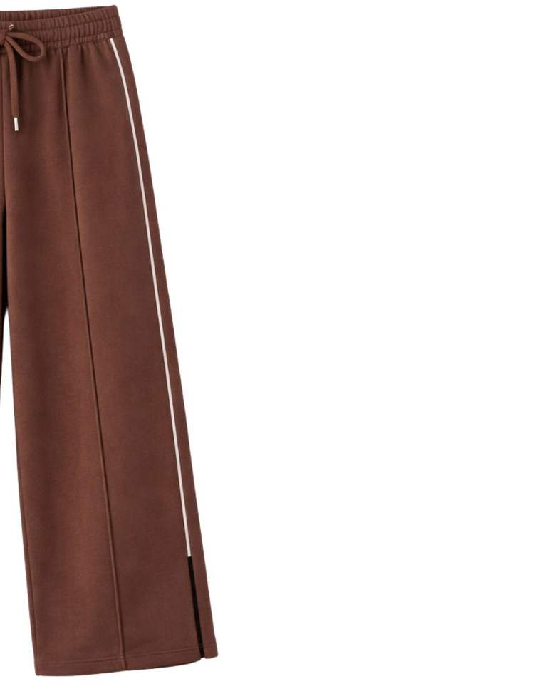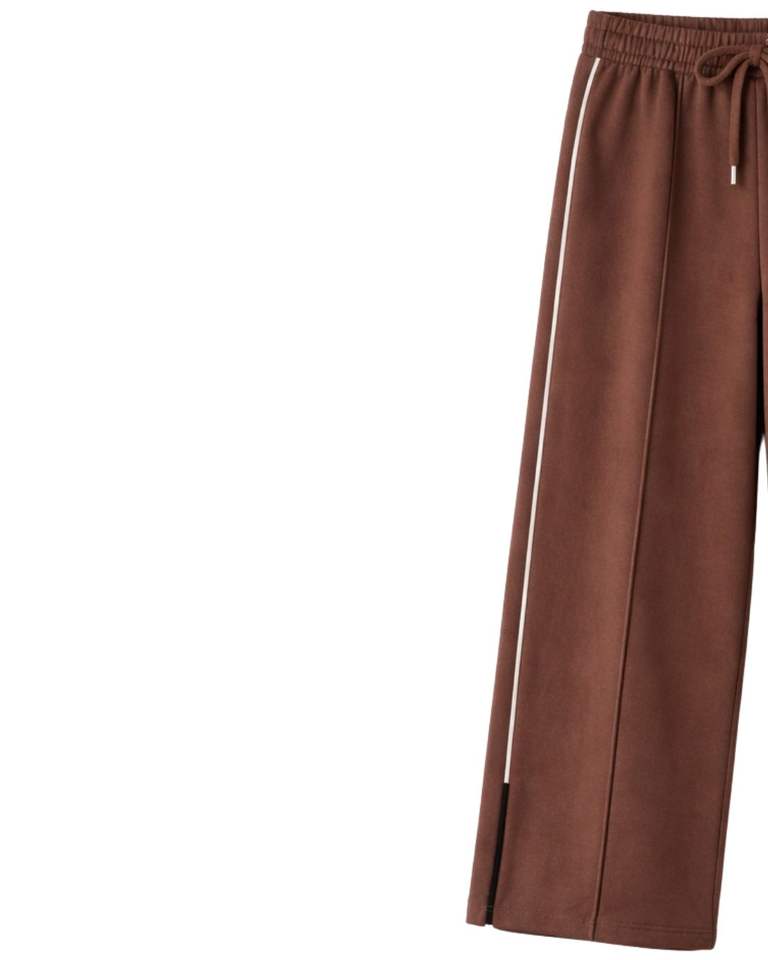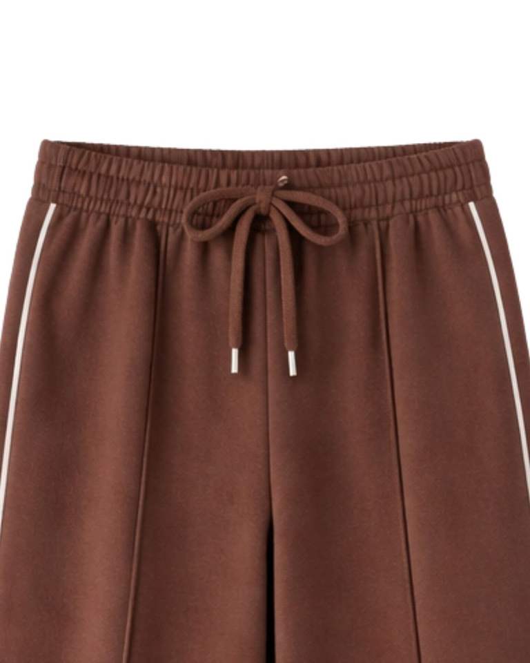 กางเกงวอร์มขายาวสีน้ำตาลช็อกโกแลตสำหรับผู้หญิง ขอบเอวยางยืด มีเชือกผูกเอว ทรงหลวม สวมใส่สบาย เหมาะสำหรับพักผ่อน