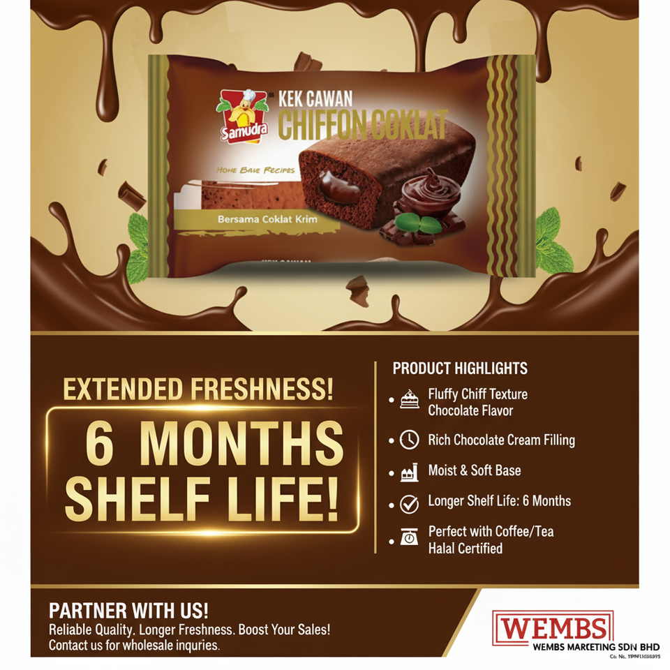 เค้กชิฟฟ่อนช็อคโกแลต24 pkts x 68g พร้อมไส้โกโก้เนื้อนุ่มและละเอียดอ่อน