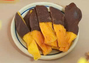 มะม่วงจุ่มช็อคโกแลตมะม่วงอบแห้งนุ่มๆเคลือบในช็อกโกแลตเรียบหวานช็อกโกแลตจุ่มมะม่วง