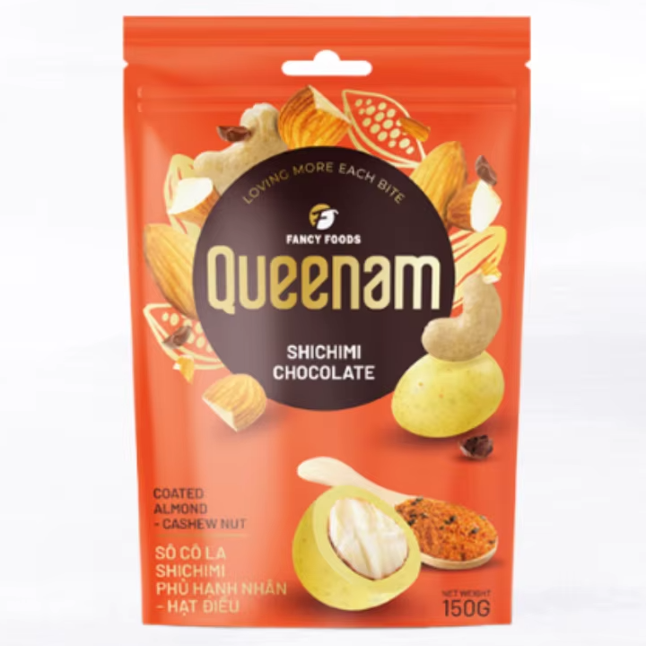 เนื้อหา:ถั่วเม็ดมะม่วงหิมพานต์อัลมอนด์เคลือบช็อคโกแลต shichimi