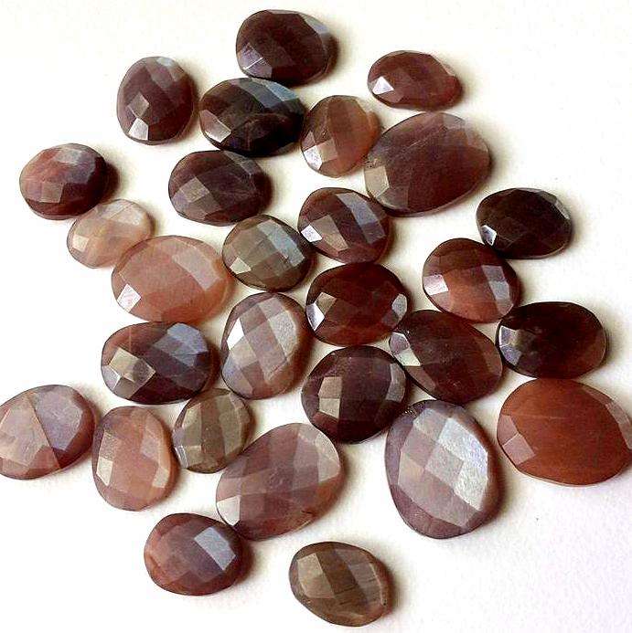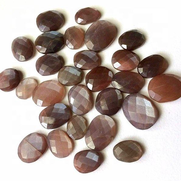 ช็อกโกแลตมูนสโตนเพชรพลอยเหลี่ยมเพชรพลอยทรงไม่เท่ากันทรงหลวมแบบแบนหลังเบี้ยทำต่างหูคุณภาพดีตามธรรมชาติ