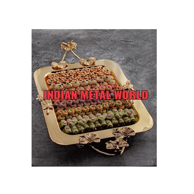 ถาดอลูมิเนียมพร้อมด้ามจับถาดอลูมิเนียมถาดเสิร์ฟอาหารบนโต๊ะอาหารในโรงแรมและภัตตาคาร