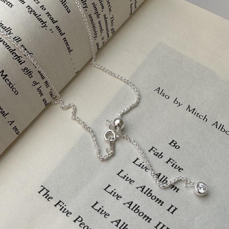 สร้อยคอเงิน S925แบบเกาหลีย้อนยุคเรียบง่ายสร้อยคอสร้อยคอสร้อยคอแฟชั่นพร้อมจี้เพทายไหปลาร้าห่วงโซ่เดี่ยวดีไซน์เฉพาะ
