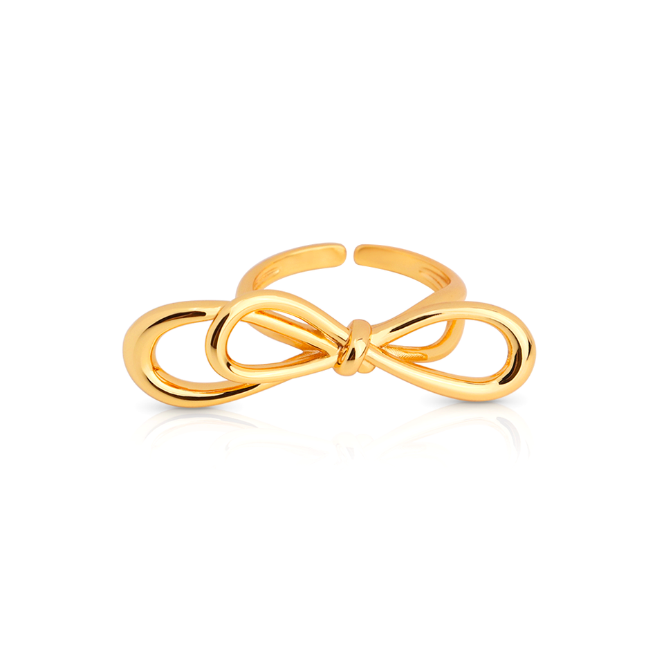 แหวน316L รูปโบว์ชุบเงินสแตนเลสสตีลแหวนผีเสื้อปรับโบว์ได้ของขวัญสุดหรู