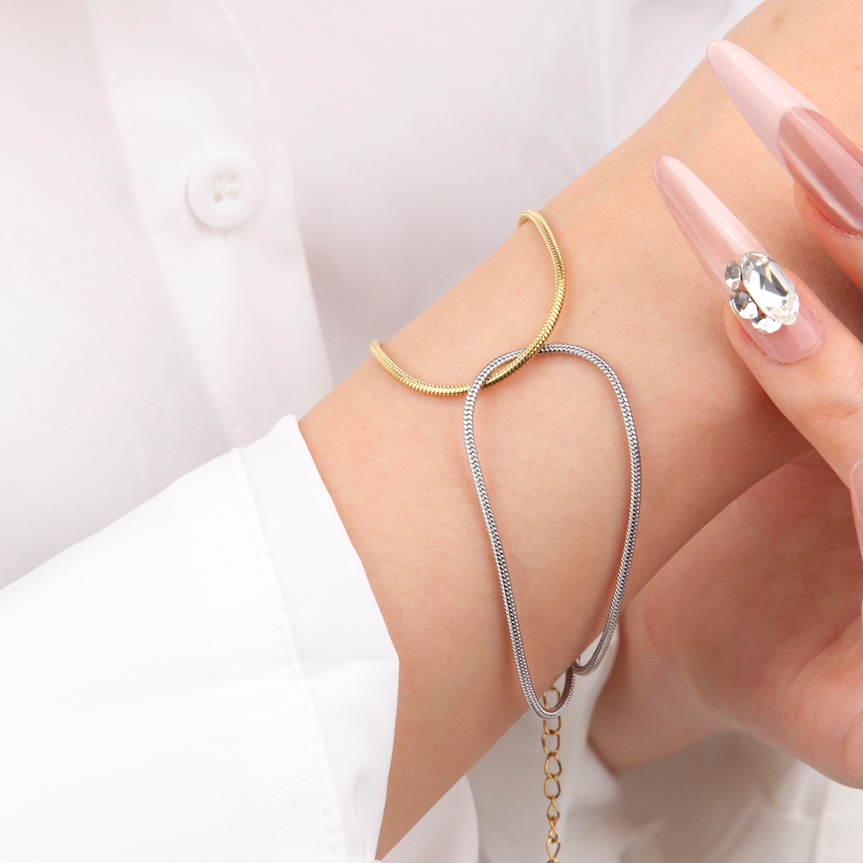 สร้อยข้อมือสแตนเลสสตีล 316L แบบสองชั้น ลายโซ่ผสม ลายหัวใจและลายงู สำหรับผู้หญิง ยี่ห้อ Chris April