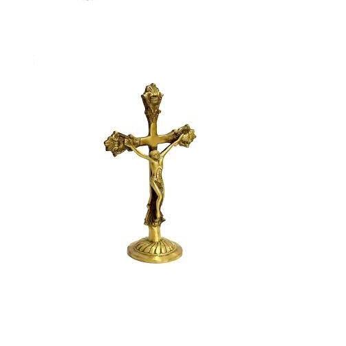 คริสเตียนข้ามพระเยซูคริสต์ตรึงกางเขนและเชิงเทียนของทองเหลืองสลักแท่นบูชาชุดอุปกรณ์คริสตจักรที่มีอยู่ในราคาขายส่ง
