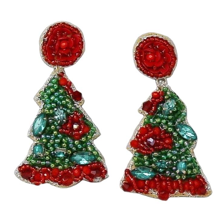 เครื่องประดับคริสต์มาสตามฤดูกาลของขวัญต่างหูธีมเขียวขจีต่างหูประดับลูกปัดต่างหูแบบห้อย