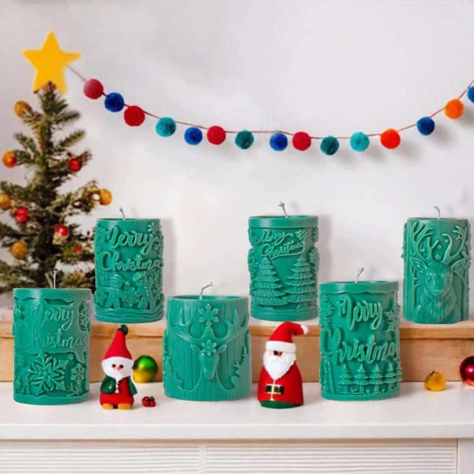 แม่พิมพ์ซิลิโคนสำหรับเทียนหอมอโรมาธีพีแบบคริสต์มาส รูปต้นคริสต์มาส กวางเรนเดียร์ และหินหอม