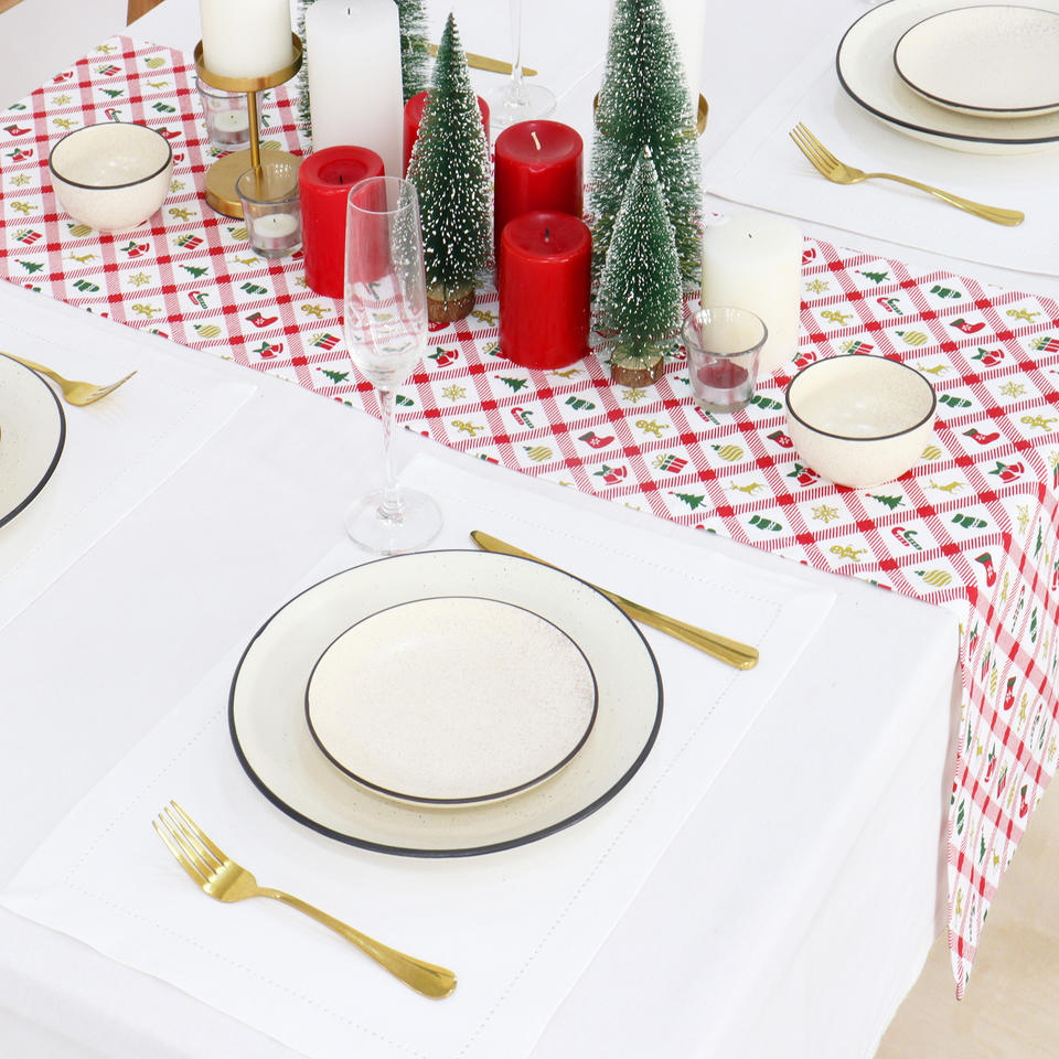 ผ้าปูโต๊ะพิมพ์สีแดง/ทองสไตล์บ้านไร่ที่ทันสมัยตกแต่งวันหยุดเทศกาลคริสต์มาสขนาด14X90นิ้ว