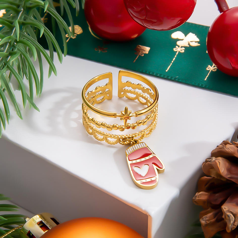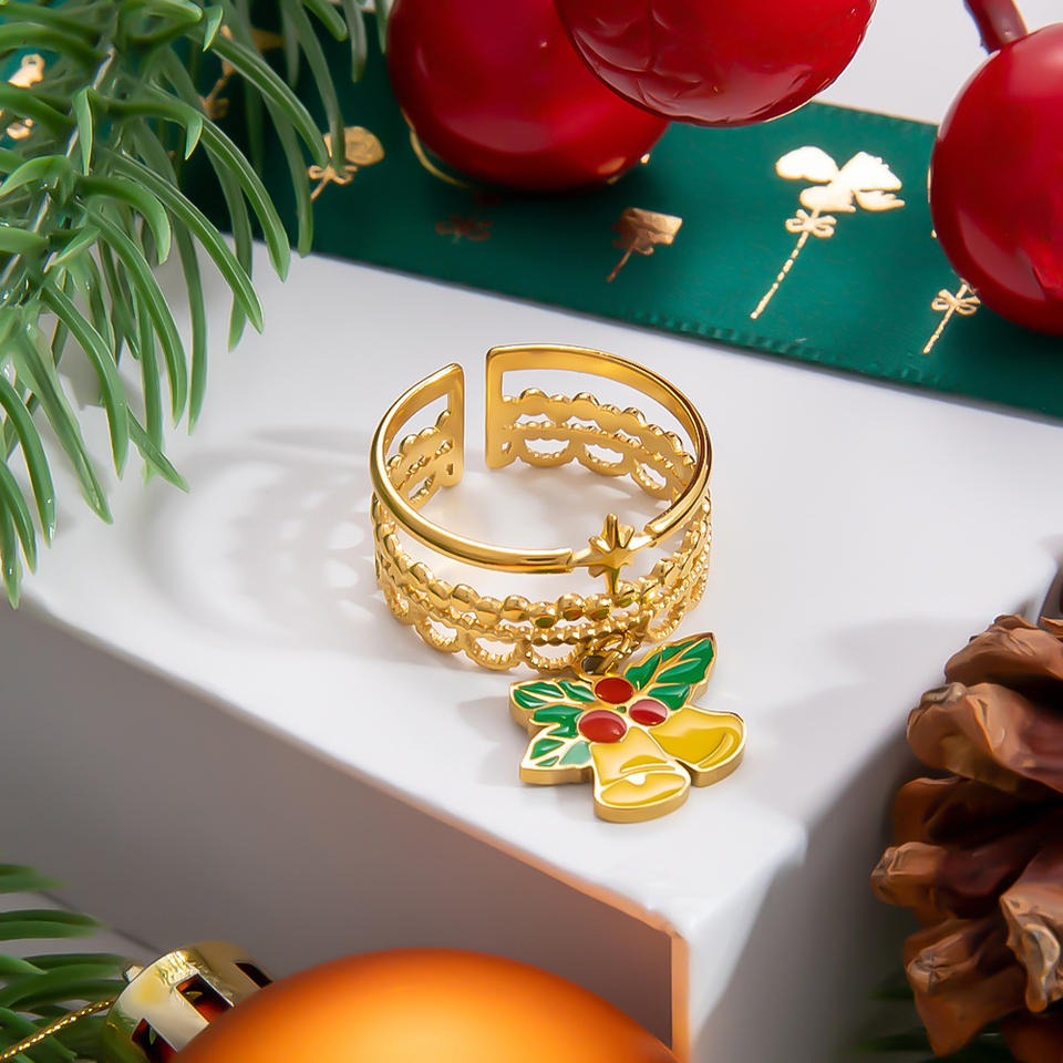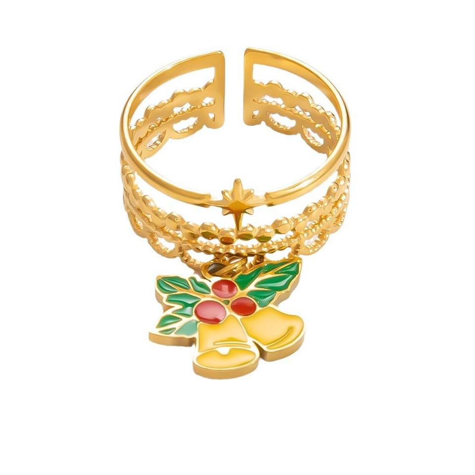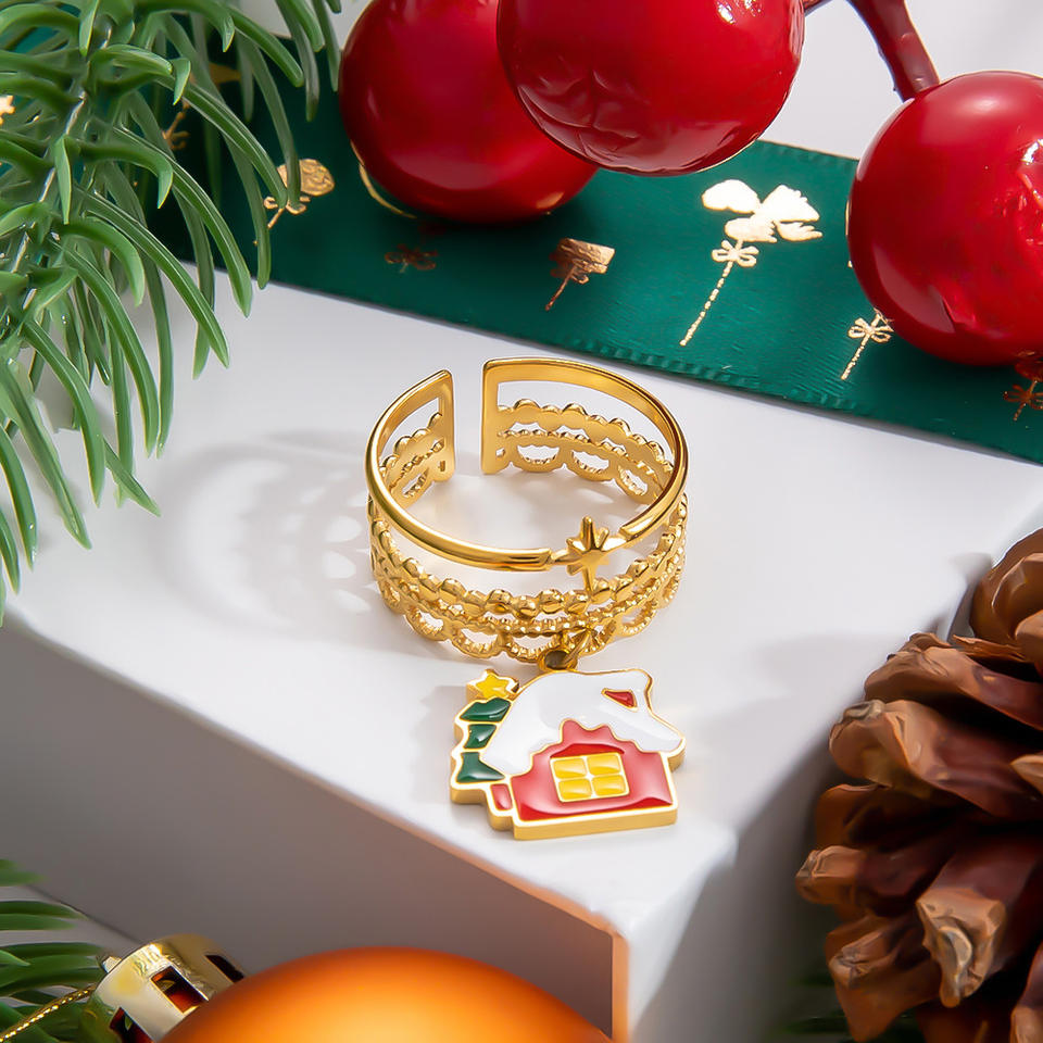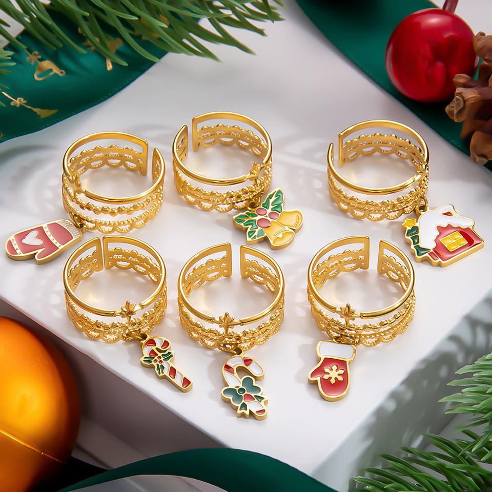 แหวนเปิดลายการ์ตูนคริสต์มาสชุบทองพร้อมจี้สำหรับผู้หญิง ของขวัญเครื่องประดับ