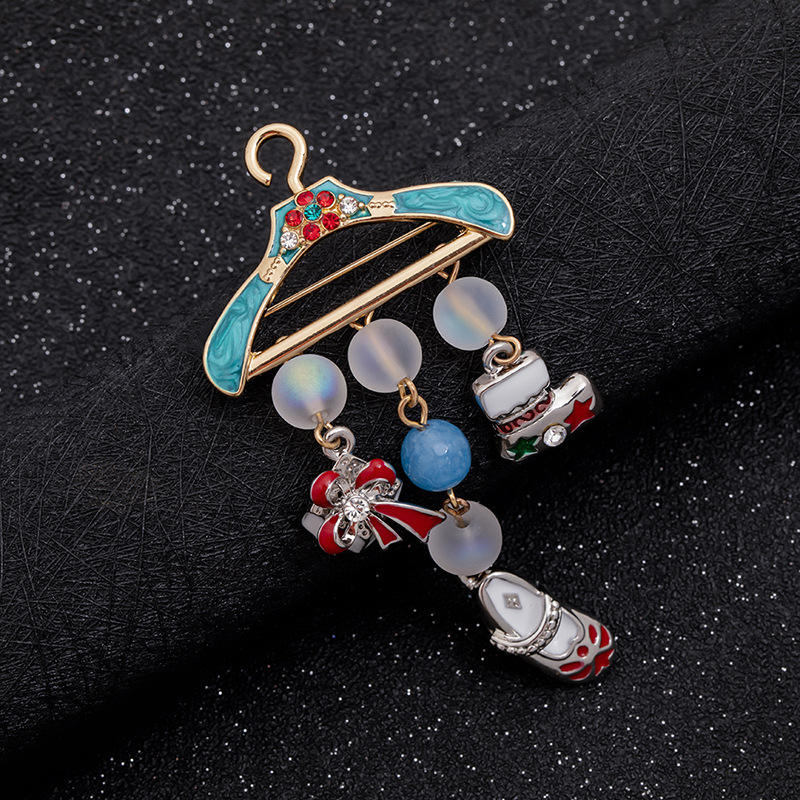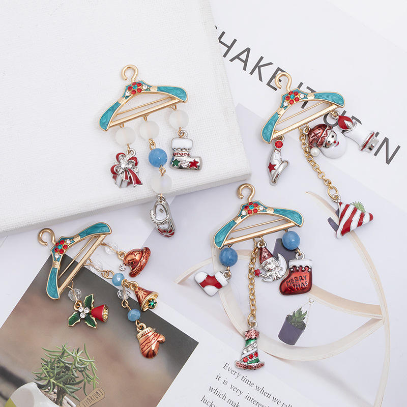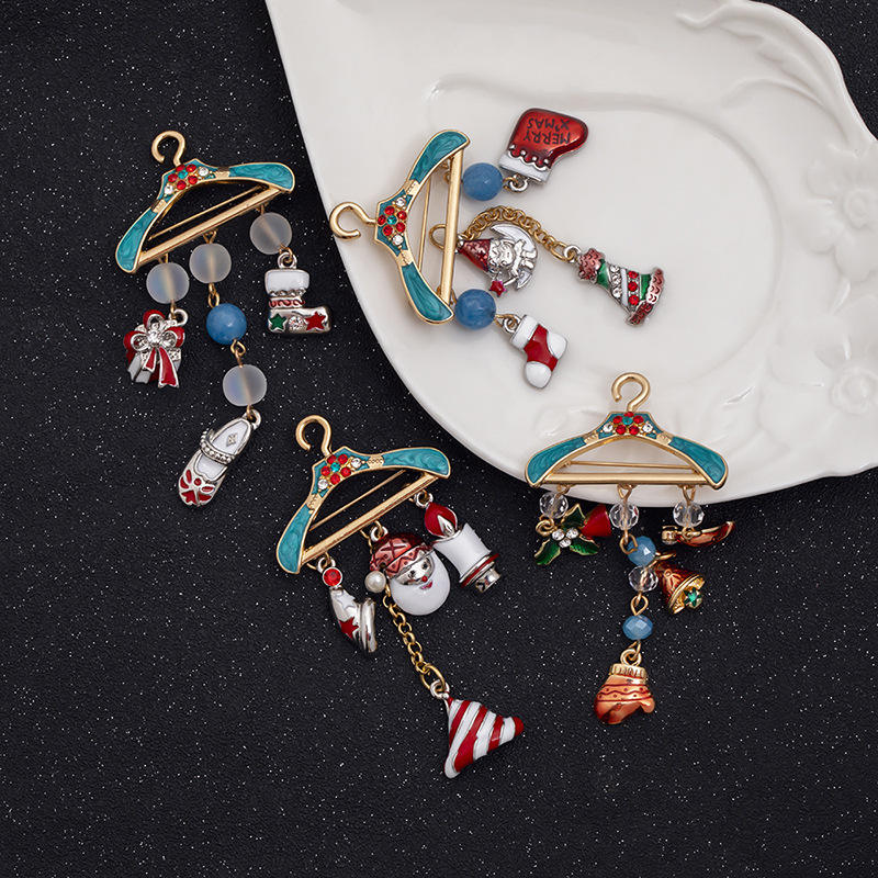 เข็มกลัดคอลเล็คชั่นคริสต์มาส,เข็มกลัดโลหะผสมรูปซานต้าเบลล์พู่ห้อยยาวช่อดอกไม้สำหรับนักเรียน
