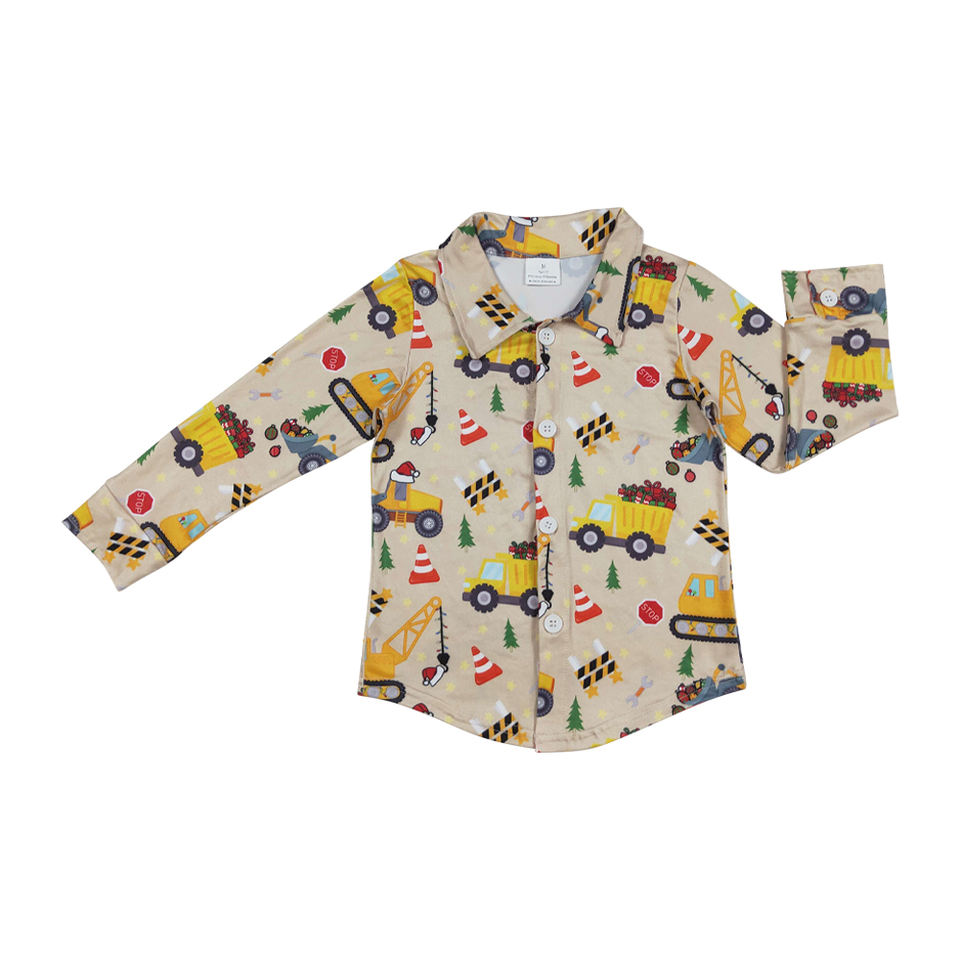 Christmas Construction Truck Hat Spandex Long Sleeve Boys Top Baby Clothes Boutique Wholesale High Quality Hot Sale New Arrival
