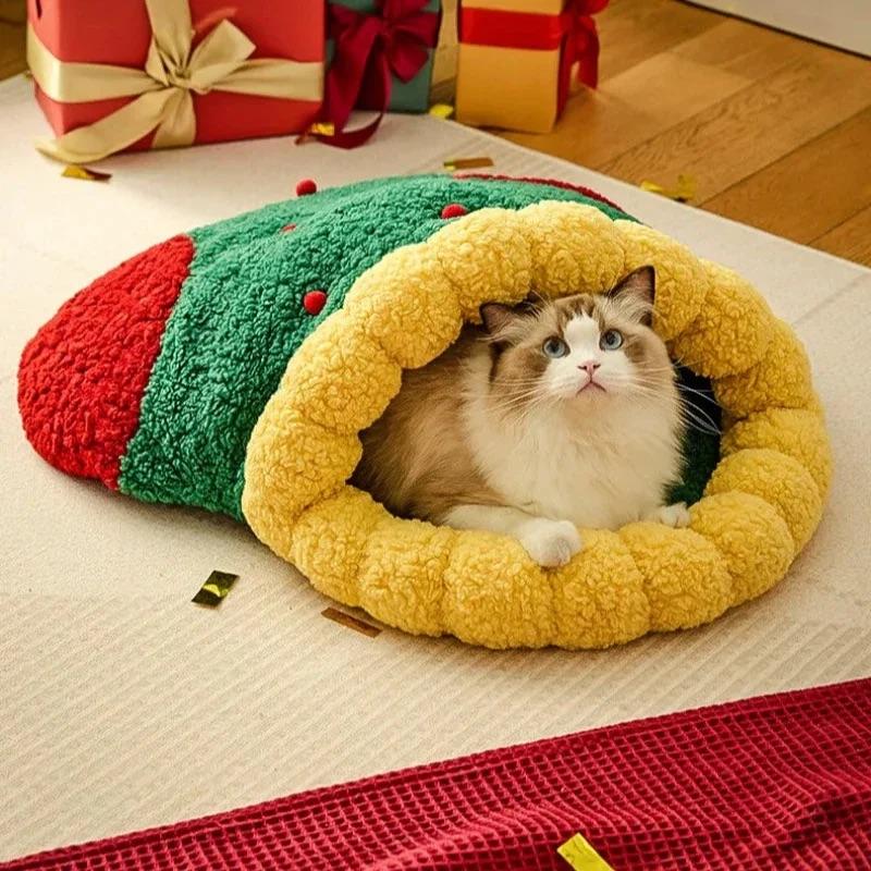 ถุงนอนแมวนุ่มสบายสำหรับแมวในบ้านสุนัขเล็กๆกระเป๋าสัตว์เลี้ยงซักได้อบอุ่นของขวัญตกแต่งวันหยุด