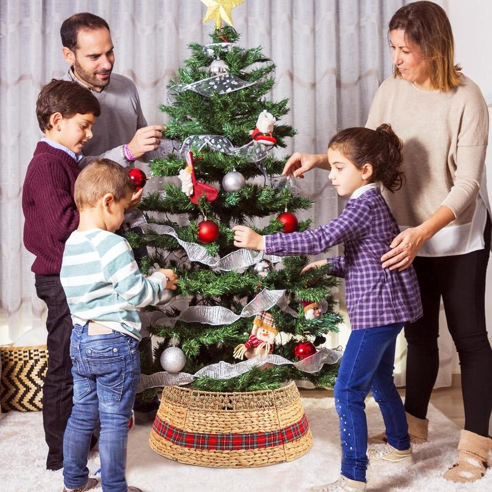 ที่คลุมกระโปรงต้นไม้สีแดงผักตบชวาประดับตกแต่งเทศกาลคริสต์มาสสำหรับตกแต่งฐานดอกไม้และต้นไม้ในร่มและกลางแจ้ง