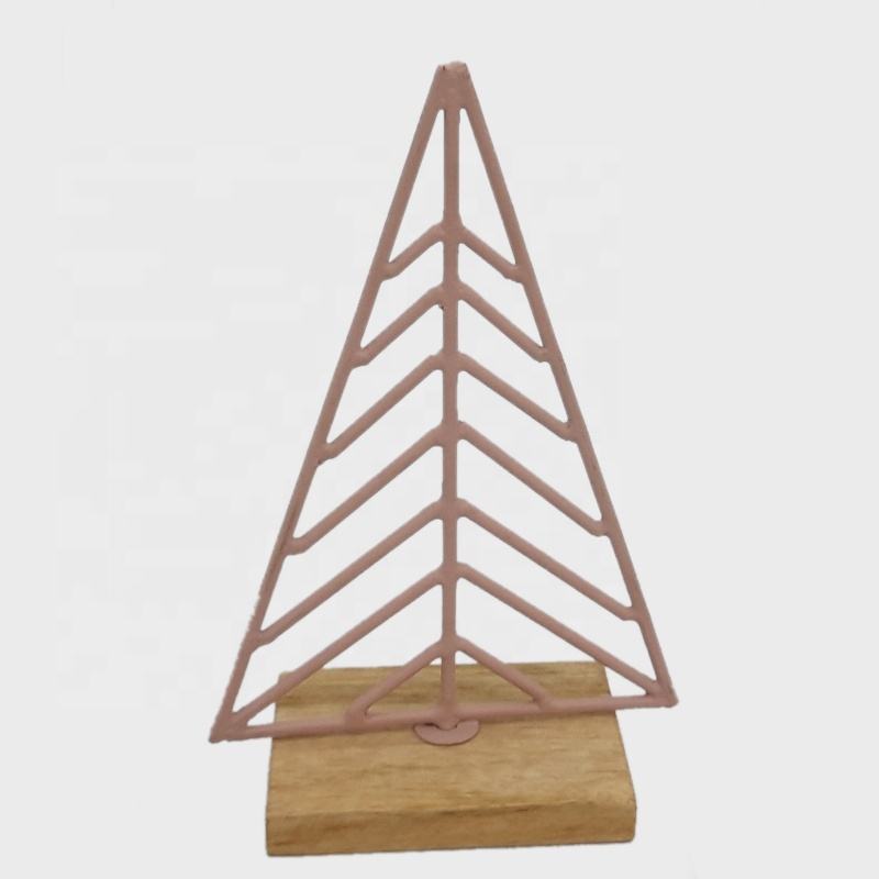 ต้นคริสต์มาสสำหรับตกแต่งบ้าน,ต้นคริสต์มาสทำจากเหล็กและไม้มีสไตล์พร้อมฐานไม้ทรงสี่เหลี่ยมสีชมพูสำหรับตกแต่งบนโต๊ะ