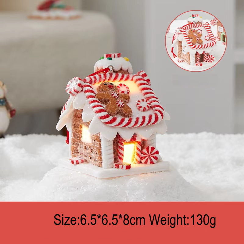 ของตกแต่งคริสต์มาส บ้านขนมหวานนางฟ้าเรซิ่นขนาดเล็ก ประดับไฟ สไตล์ชาติพันธุ์ ของขวัญบ้านคุกกี้คริสต์มาส ของประดับตกแต่งหน้าต่าง