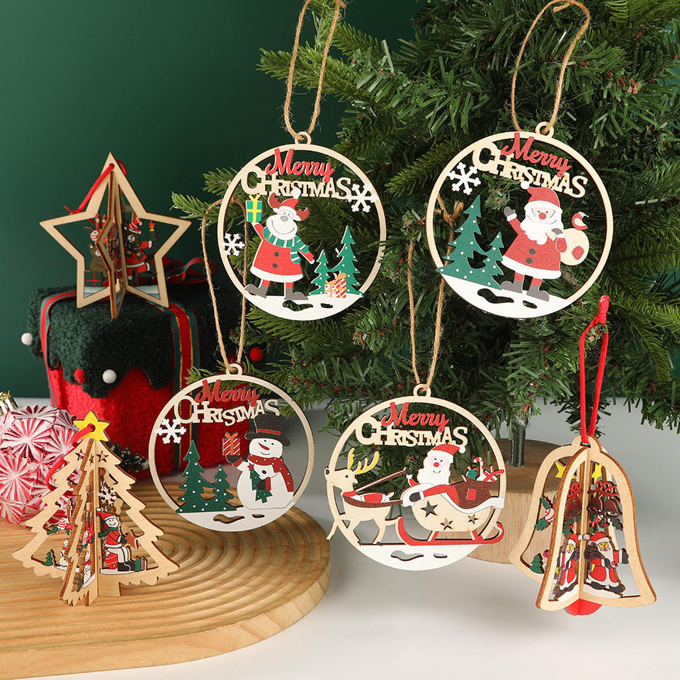 จี้ไม้คริสต์มาสสำหรับผู้สูงอายุ ป้ายแขวนพิมพ์ลายกราเวียร์ ตัดลายเรียบง่ายทันสมัย อุปกรณ์จัดงานปาร์ตี้สำหรับตกแต่งบ้านและสำนักงาน