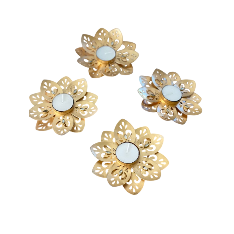 ที่ใส่เทียนทีไลท์โลหะทำมือสำหรับตกแต่งคริสต์มาส เป็นมิตรกับสิ่งแวดล้อม ของตกแต่งบ้าน สีทอง