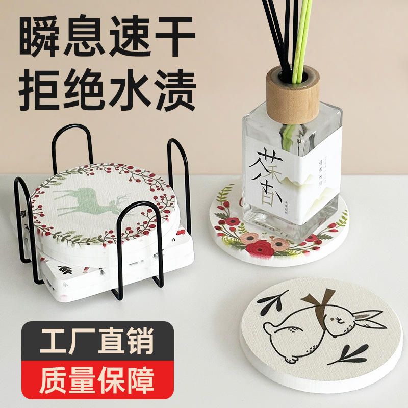 แผ่นรองแก้วดินไดอะตอมเมียส์ลายคริสต์มาส รูปทรงสี่เหลี่ยม ขนาด 10x10 ซม. ซึมซับความร้อน ป้องกันความร้อน สำหรับงานเลี้ยงน้ำชา กาแฟ