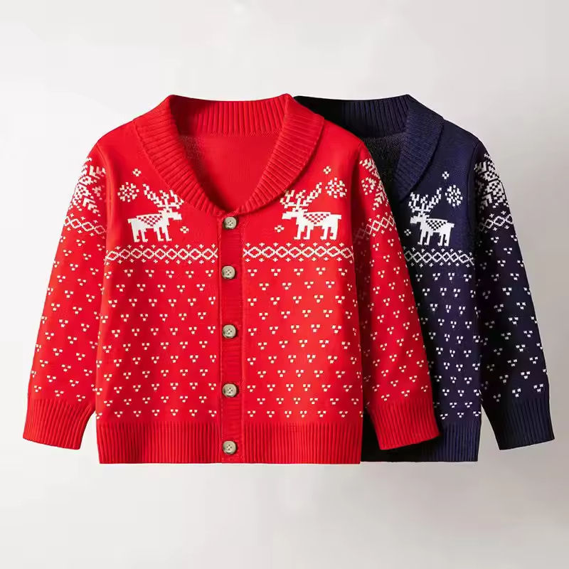 เสื้อสเวตเตอร์เด็กผู้หญิงลายไดโนเสาร์คริสต์มาส ผ้าฝ้าย 100% สำหรับเด็ก