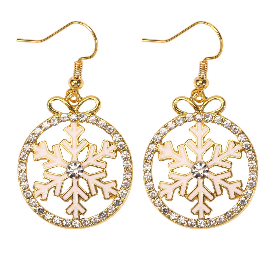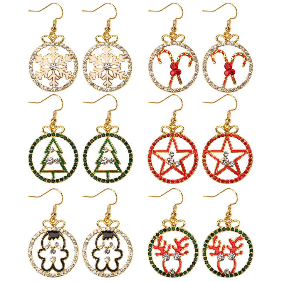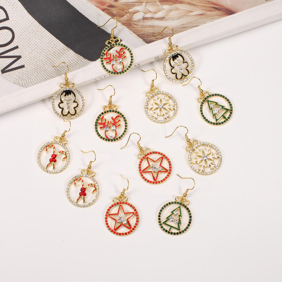 ต่างหูคริสต์มาส ลายเกล็ดหิมะ ต้นคริสต์มาส ดาว กวางเรนเดียร์ ไม้เท้าหวาน สำหรับงานปาร์ตี้ ผู้หญิง ชุบทอง ประดับคริสตัล
