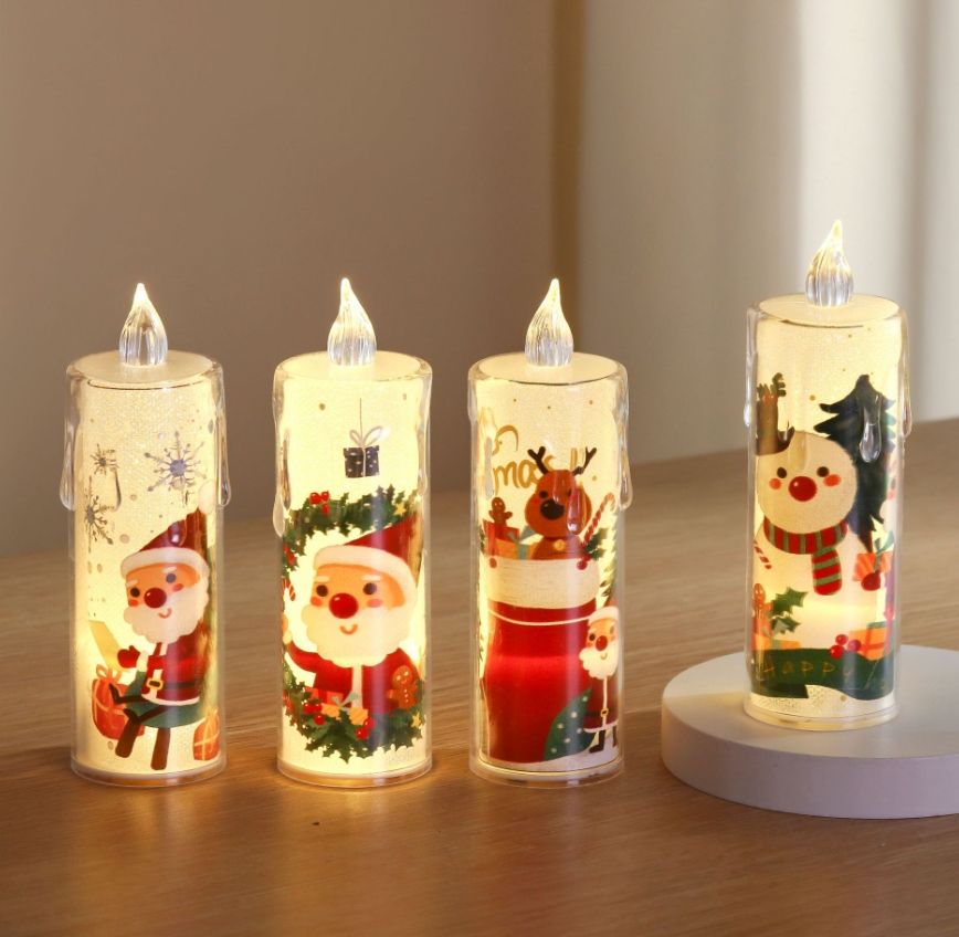 เทียนไร้เปลวไฟลายซานตาคลอสและสโนว์แมน ใช้แบตเตอรี่ ตกแต่งเทศกาลคริสต์มาส ไฟ LED สำหรับเทศกาลวันหยุด