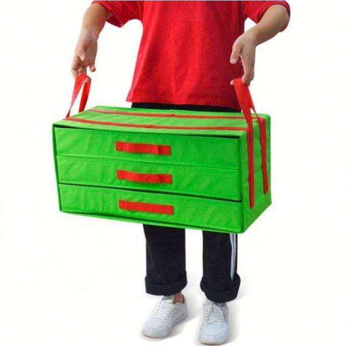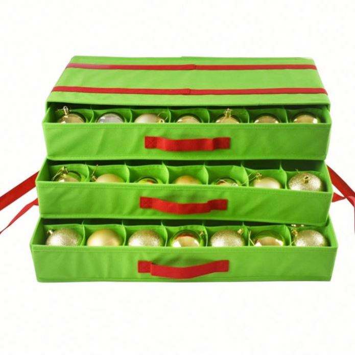 กล่องเก็บเครื่องประดับคริสต์มาสแบบพับได้พร้อมวัสดุที่ไม่ถักทอที่ทนทาน ฝาปิดแบบถอดได้ ความจุสำหรับเครื่องประดับวันหยุดมาตรฐาน 64 ชิ้น
