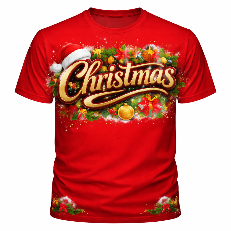 เสื้อยืดแขนสั้นคอกลมลายวินเทจคุณภาพสูง พิมพ์ลายแบบซับลิเมชั่นเต็มตัว น้ำหนักเบาพิเศษ 165 กรัม ผ้าฝ้าย 100% ของขวัญคริสต์มาส