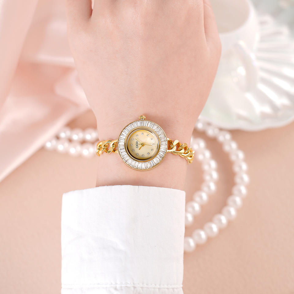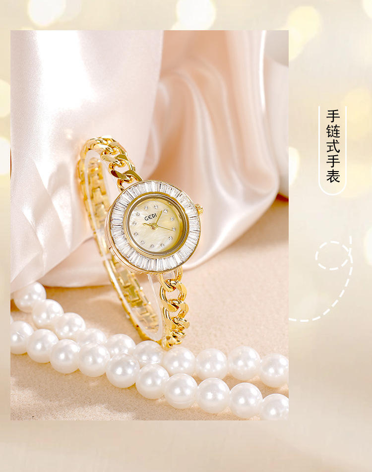 นาฬิกาข้อมือผู้หญิงหรูหราสไตล์เรโทรสุดพรีเมียม ประดับมุก ดีไซน์เฉพาะตัว ระดับไฮเอนด์ ใช้กลไกควอตซ์ เหมาะเป็นของขวัญคริสต์มาส