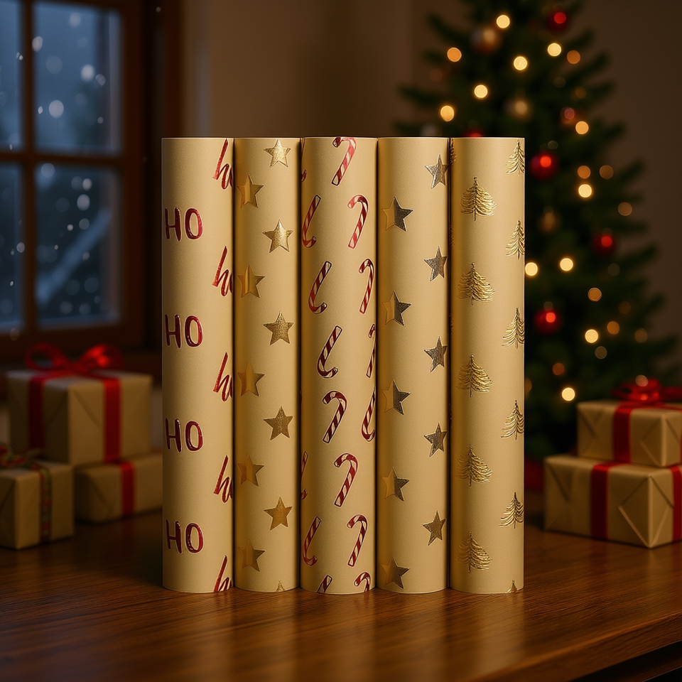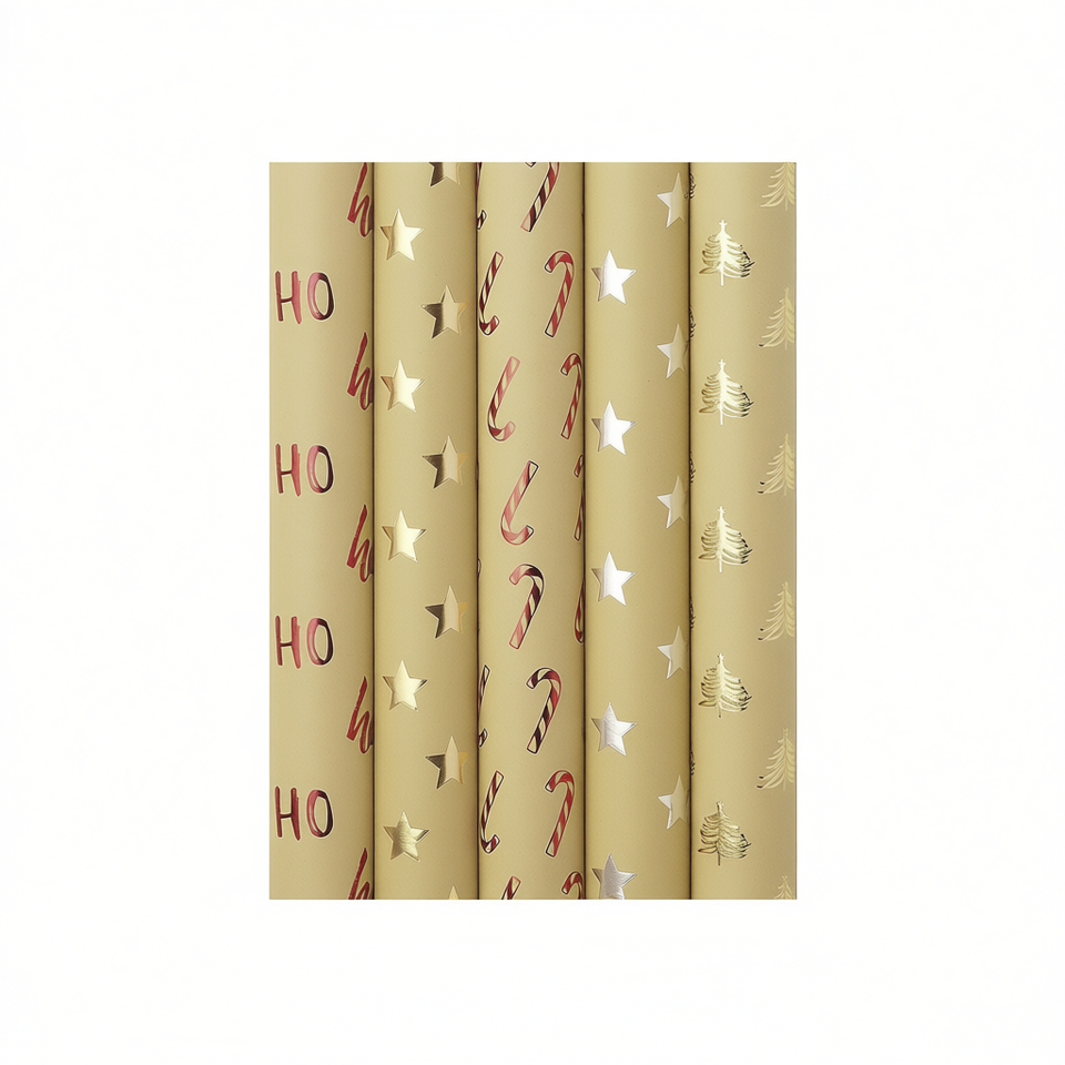 กระดาษห่อของขวัญคริสต์มาส 1.5 ม. x 70 ซม. ลายฟอยล์สีทอง ชุด 30 ม้วน