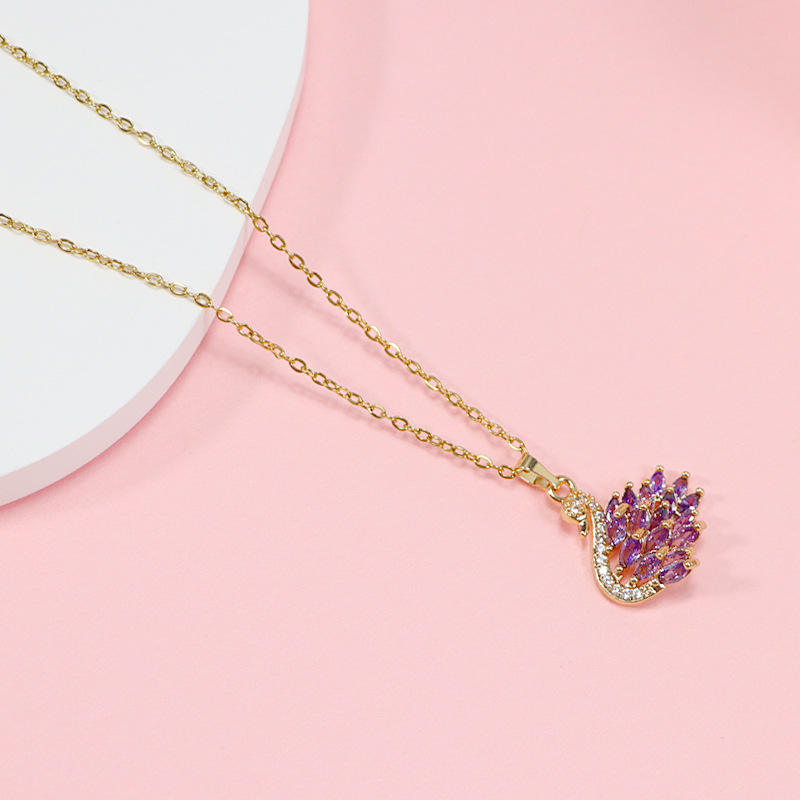 สร้อยคอของขวัญคริสต์มาสที่ดีสําหรับผู้หญิงชุบทองการออกแบบใหม่ที่กําหนดเองสร้อยคอจี้หงส์แฟชั่นเพทายที่มีสีสัน