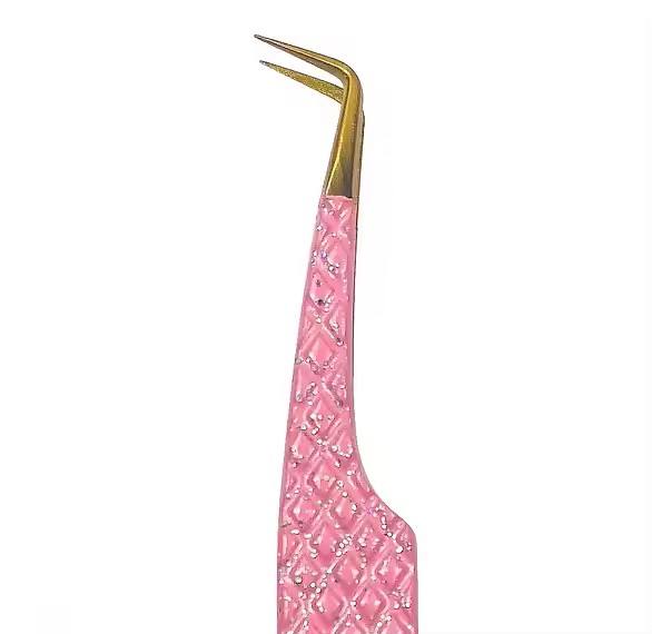 แหนบต่อขนตาคริสต์มาสสีโรสโกลด์ลายเฮลโลคิตตี้ ปลายเรียบ 90 องศา ทำจากสแตนเลส ปลายไฟเบอร์ สำหรับต่อขนตา