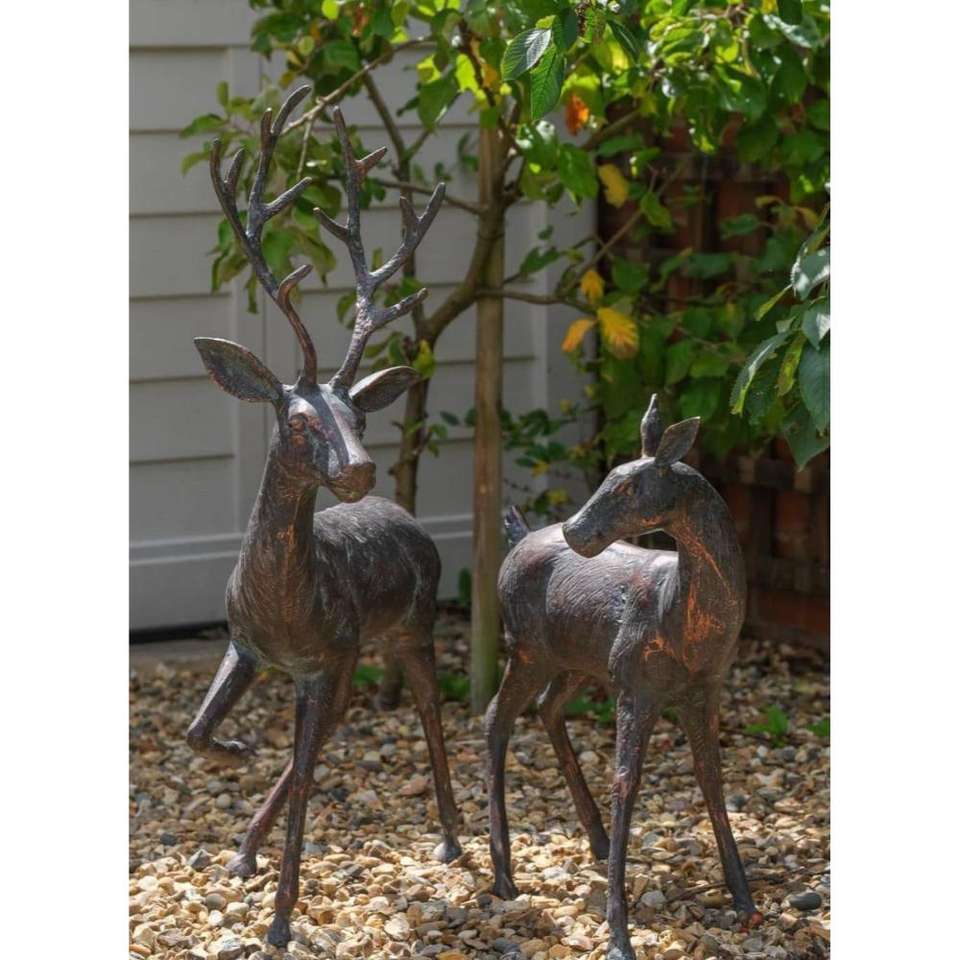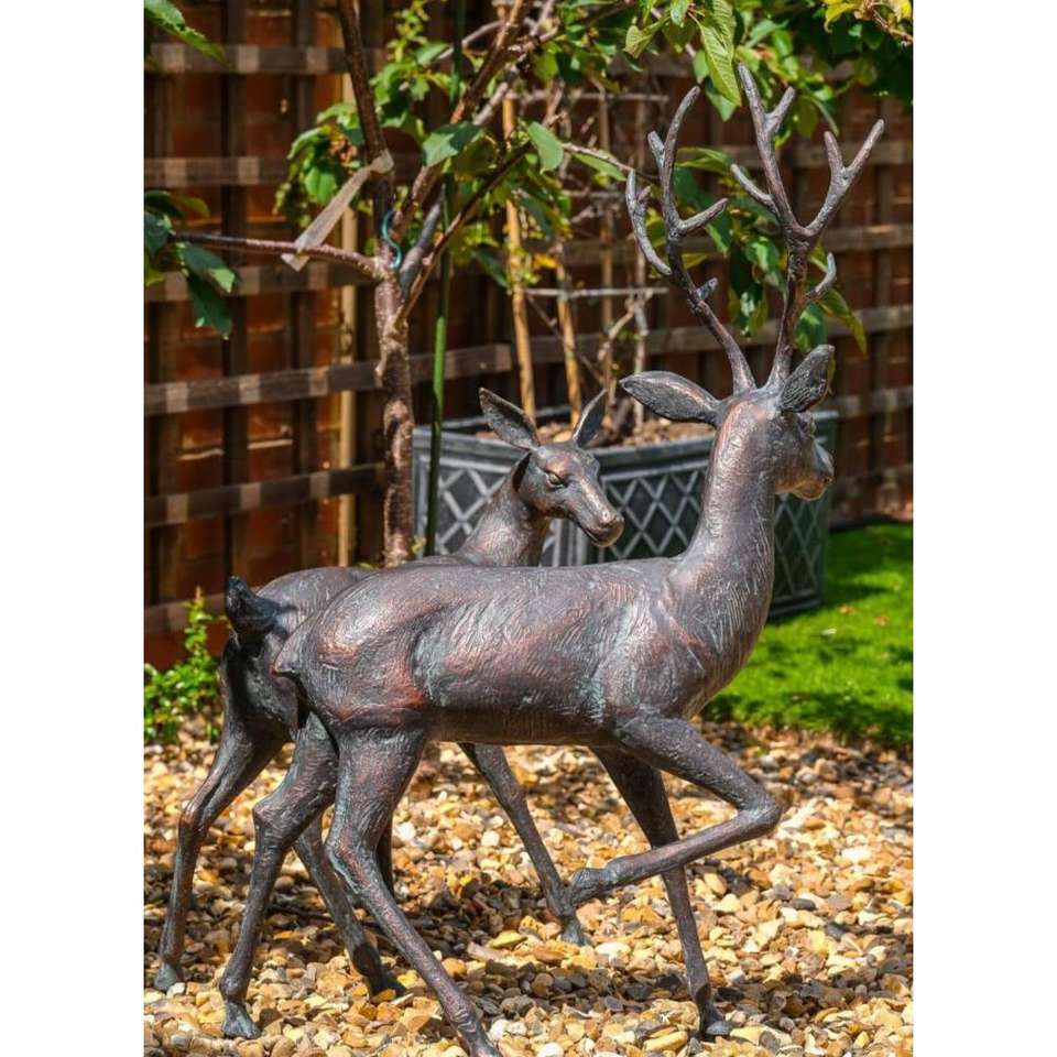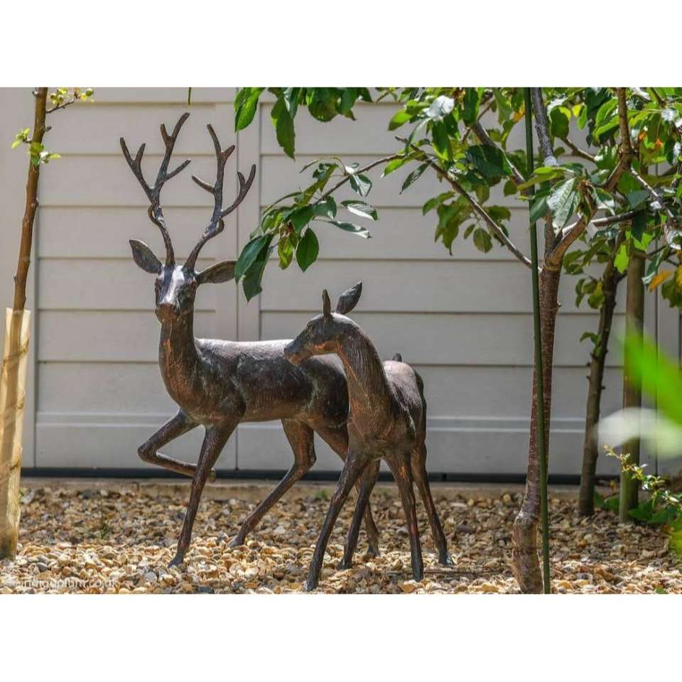 ชุดกวางเรนเดียร์สำริดสำหรับวันหยุดเทศกาลคริสต์มาสชุดรูปปั้นกวางโบราณรูปปั้นกวางเรนเดียร์ขนาดดูมีชีวิตชีวาสไตล์วินเทจ