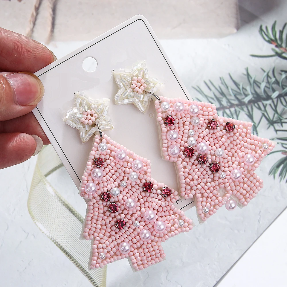 ต่างหูลูกปัดปักลายบ้านคริสต์มาส รับออกแบบลวดลายตามสั่ง ต่างหูลูกปัดคริสต์มาสคุณภาพสูง