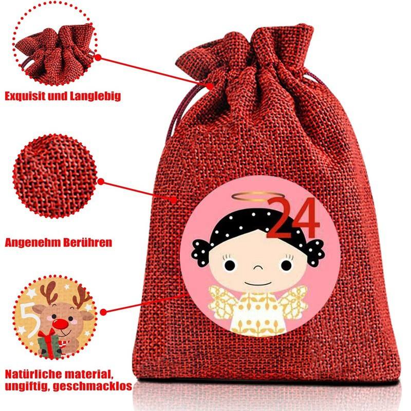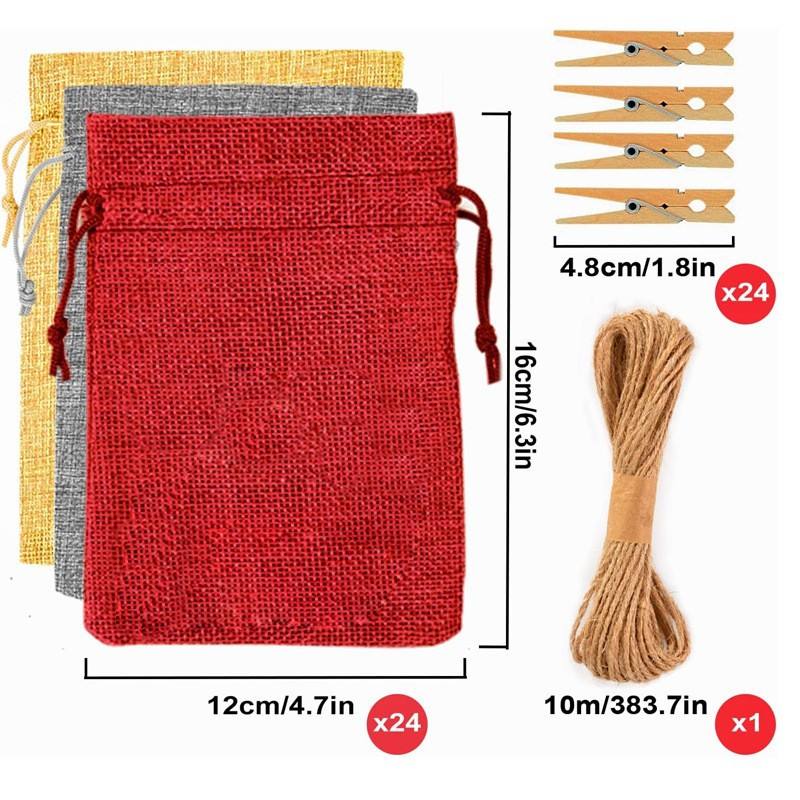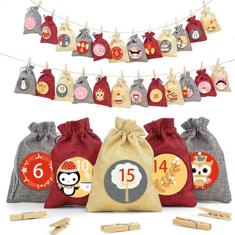 ถุงของขวัญผ้าลินินและปอกระเจาคริสต์มาสปฏิทิน1-24การจัดเรียงสำหรับของขวัญเล็กๆสำหรับลูกอม